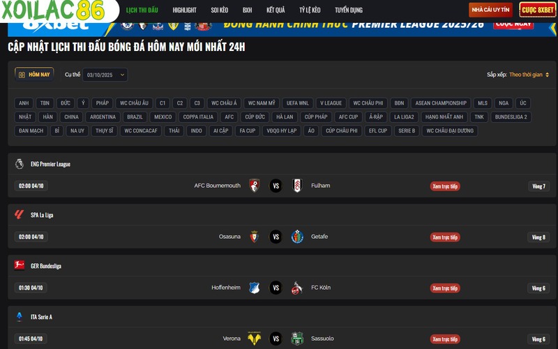 Xem lịch thi đấu bóng đá trực tuyến đầy đủ và chuẩn xác tại Xôi Lạc TV